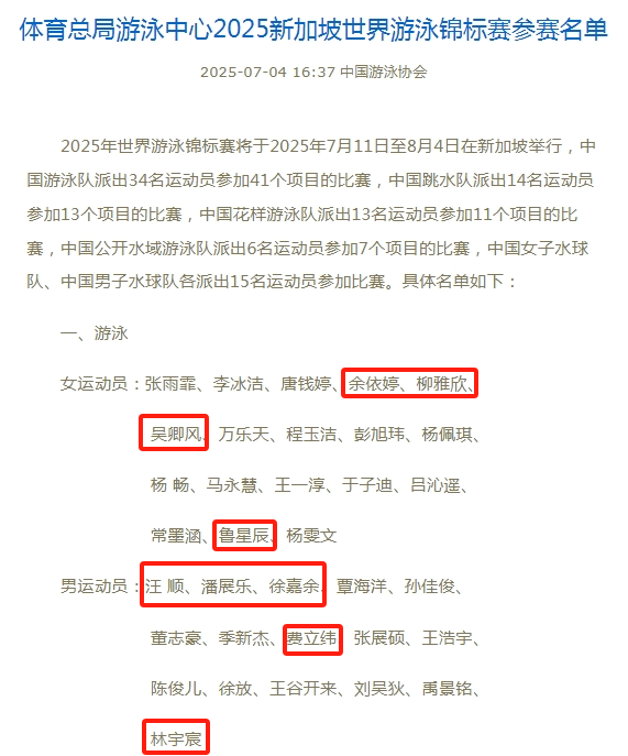 7月27日,2025年新加坡游泳世锦赛游泳项目将全面拉开大幕。