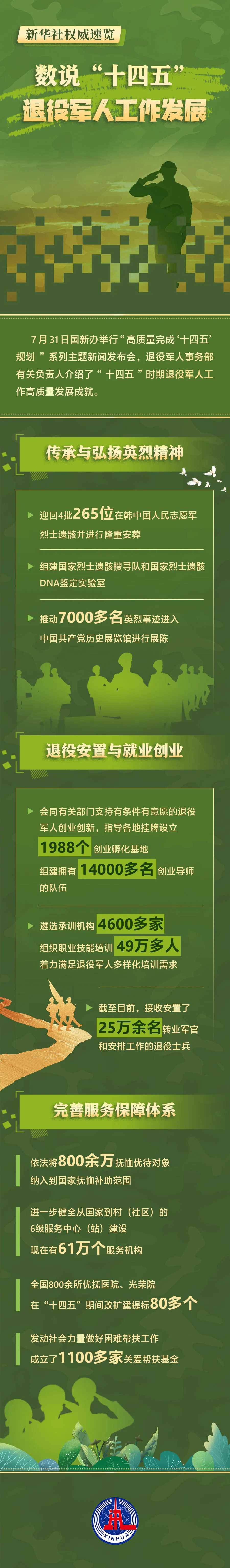 国务院新闻办公室31日举行“高质量完成‘十四五’规划”系列主题新闻发布会,退役军人事务部相关负责人介绍“十四五”时期退役军人工作发展成就。