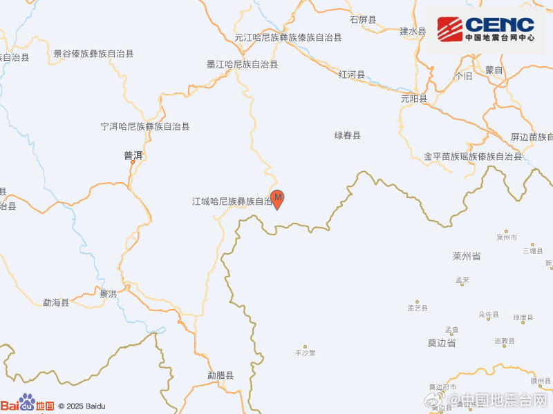 中国地震台网正式测定:8月8日2时31分在云南普洱市江城县(北纬22.56度,东经101.93度)发生3.3级地震,震源深度10千米。