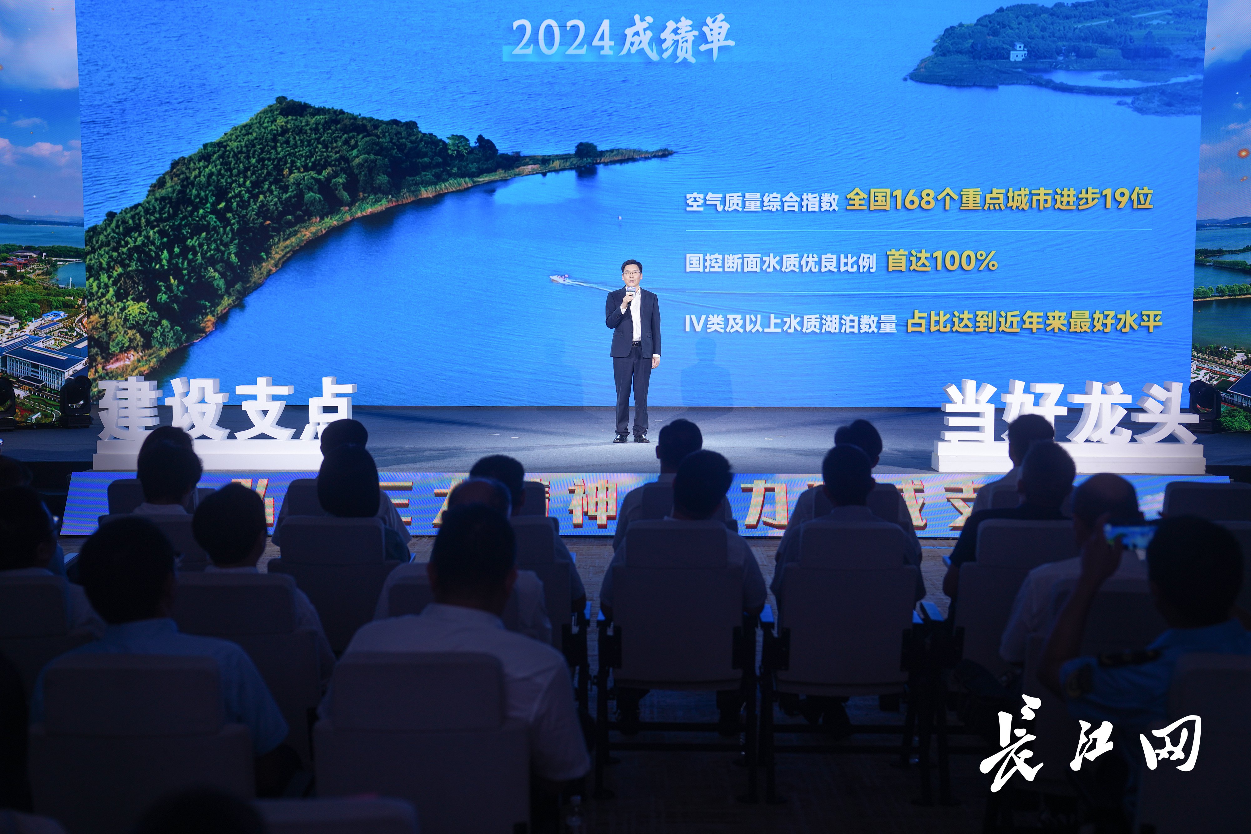 武汉市生态环境局党组书记、局长张朝辉在“打造美丽中国先行区建设示范标杆 整体提升战略支点生态承载力”主题报告会上作报告。记者彭年 摄
