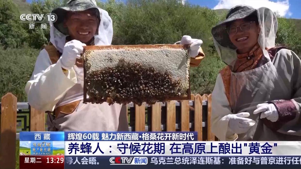 当高原的夏天被鲜花点燃,我的手机总会收到信息,看到蜜蜂就想到你,这一句是这片土地最温暖的回应,而我愿做永远的追花人,让更多的藏族同胞和我一起守候花期,在高原上酿出黄金。