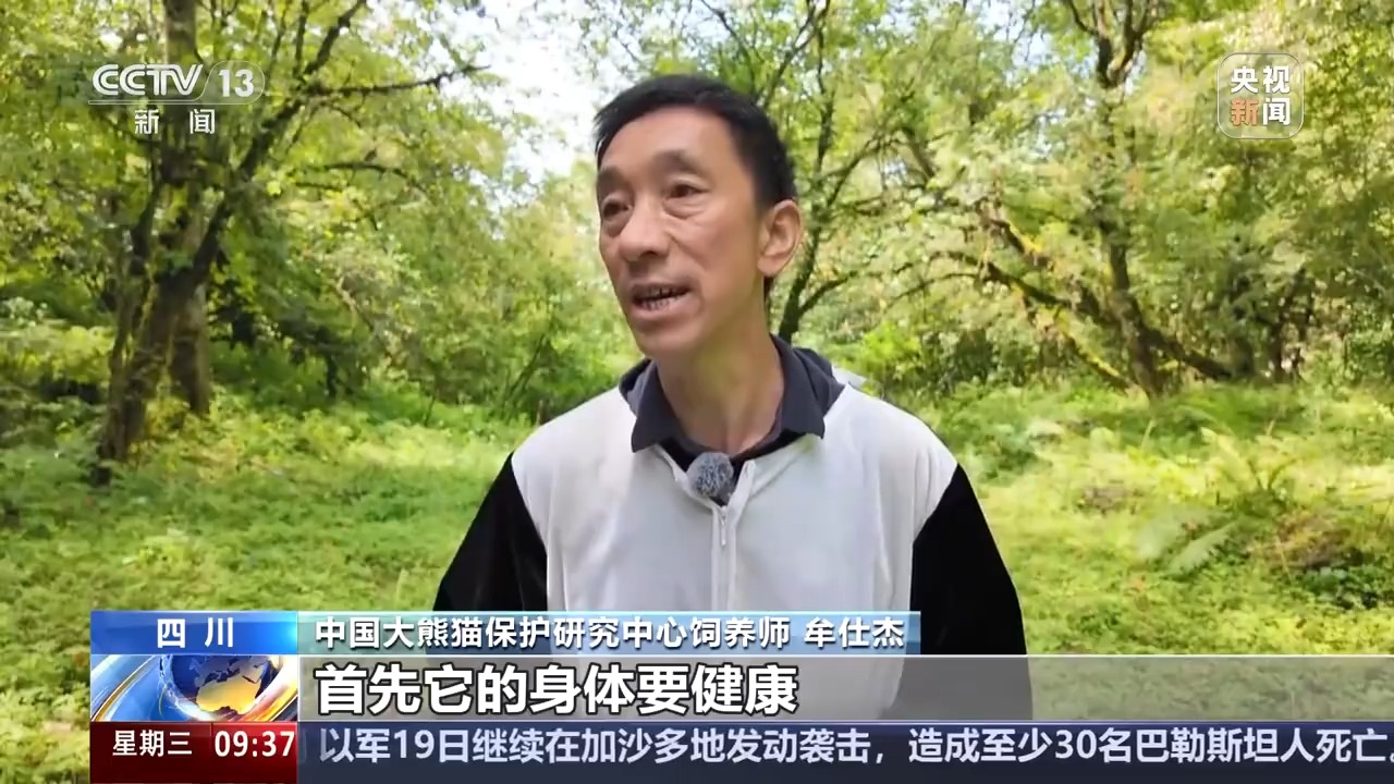 中国大熊猫保护研究中心饲养师 牟仕杰:首先它身体要健康。第二是它已经在妈妈那里学习了很多野外生存的能力。然后妈妈还要单独和它分开一段时间,让它独自在野外生活几个月后我们再监测,综合来判断这只熊猫是否可以放归。