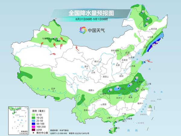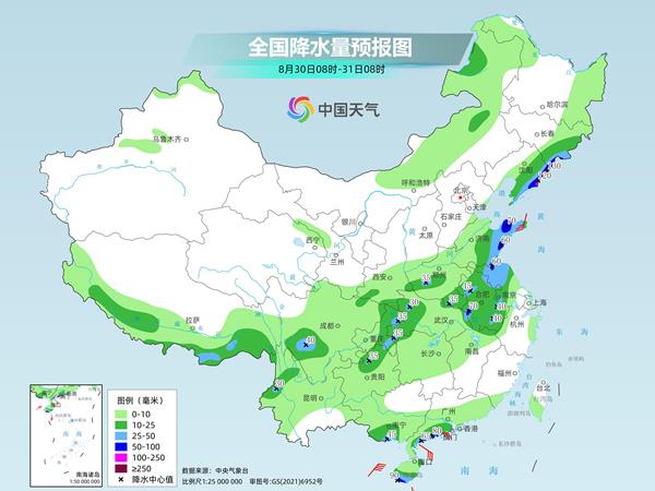今明天(8月30日至31日),我国主雨带继续南落,长江黄河之间的地区多降雨天气,部分地区有大到暴雨。此外,南海热带低压今天还将继续影响华南部分地区,需注意防风、防雨。气温方面,今天起我国高温将向南缩减,但江南中南部、华南北部等地仍多高温天气,需注意防暑。
