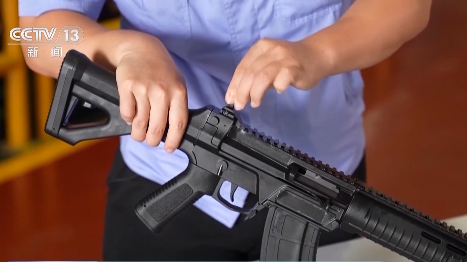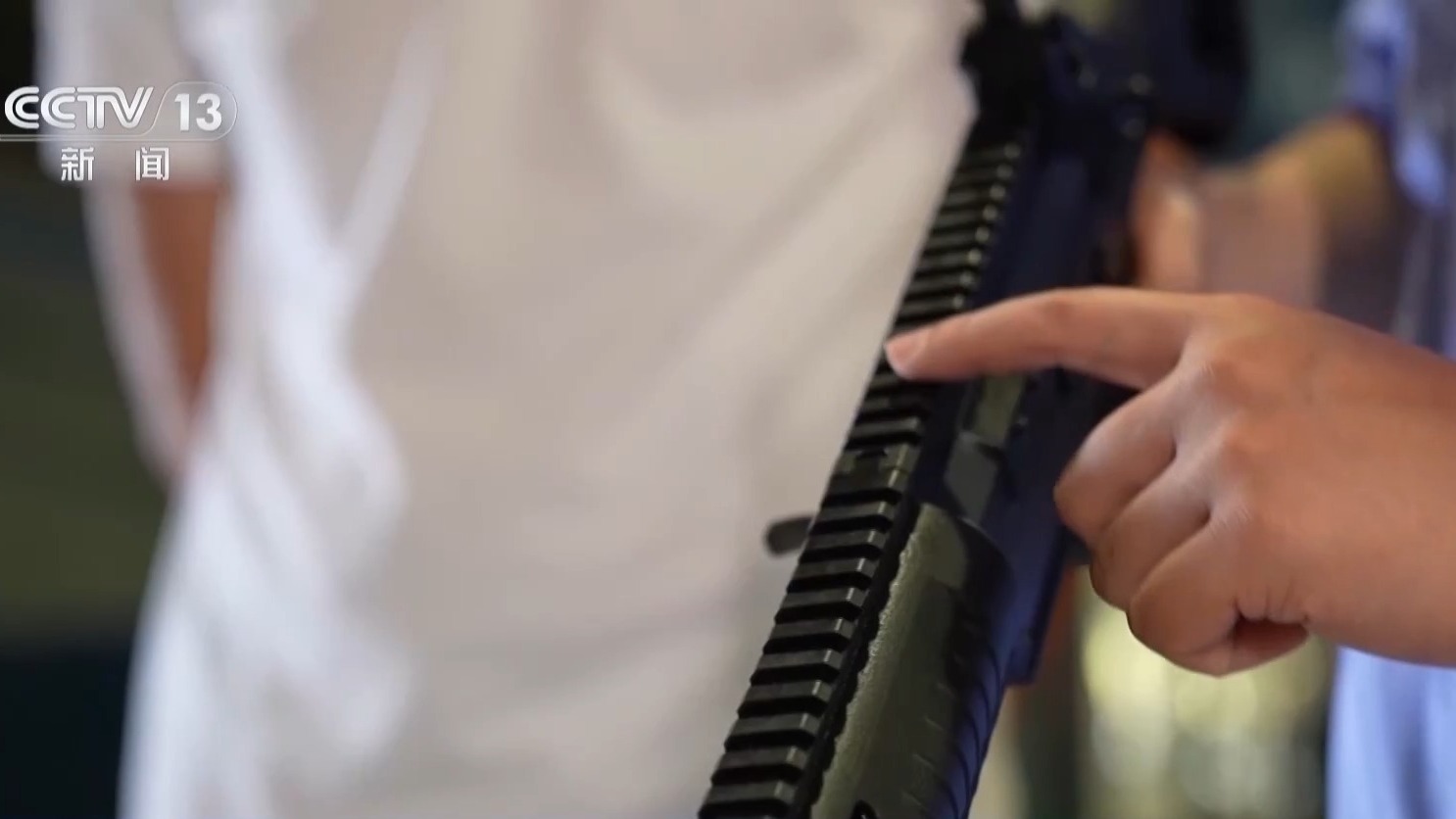 中国兵器建设工业研发人员 王洋:这一代枪械它既有高精度也有高寿命,同时可靠性也非常高,人机功效也非常好。这支枪护木是塑料的,一般而言不容易那么烫,里面一层护木是金属的,它实际上就起到隔热的作用。