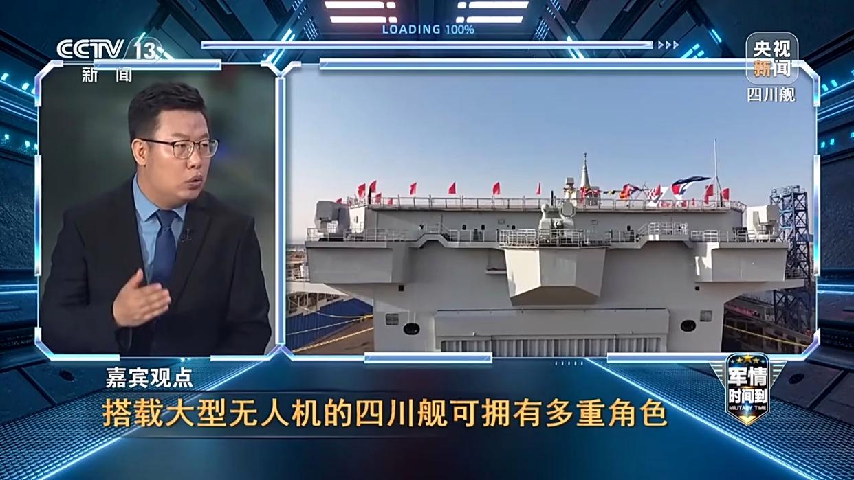 主持人 劳春燕:去年年底,076型两栖攻击舰四川舰下水了。从外观上就可以看到,四川舰配了电磁弹射装置,四川舰未来是要弹射大型的无人机吗?