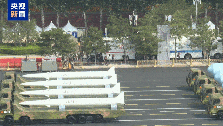 核导弹第一方队,受阅的惊雷-1空基远程导弹、巨浪-3潜射洲际导弹、东风-61陆基洲际导弹、东风-31新型陆基洲际导弹,首次集中展示我军陆海空基“三位一体”战略核力量,是维护国家主权、捍卫民族尊严的战略王牌。
