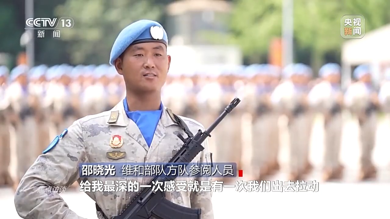 从1990年开始,中国军人的身影就出现在国际维和战场上,35年来,累计超过5万名维和官兵先后赴20多个国家和地区执行维和任务。这一次参与阅兵的不少队员都和邵晓光一样从维和前线归来,来到阅兵场,他们迈出的每一步都是中国人对和平的珍视。