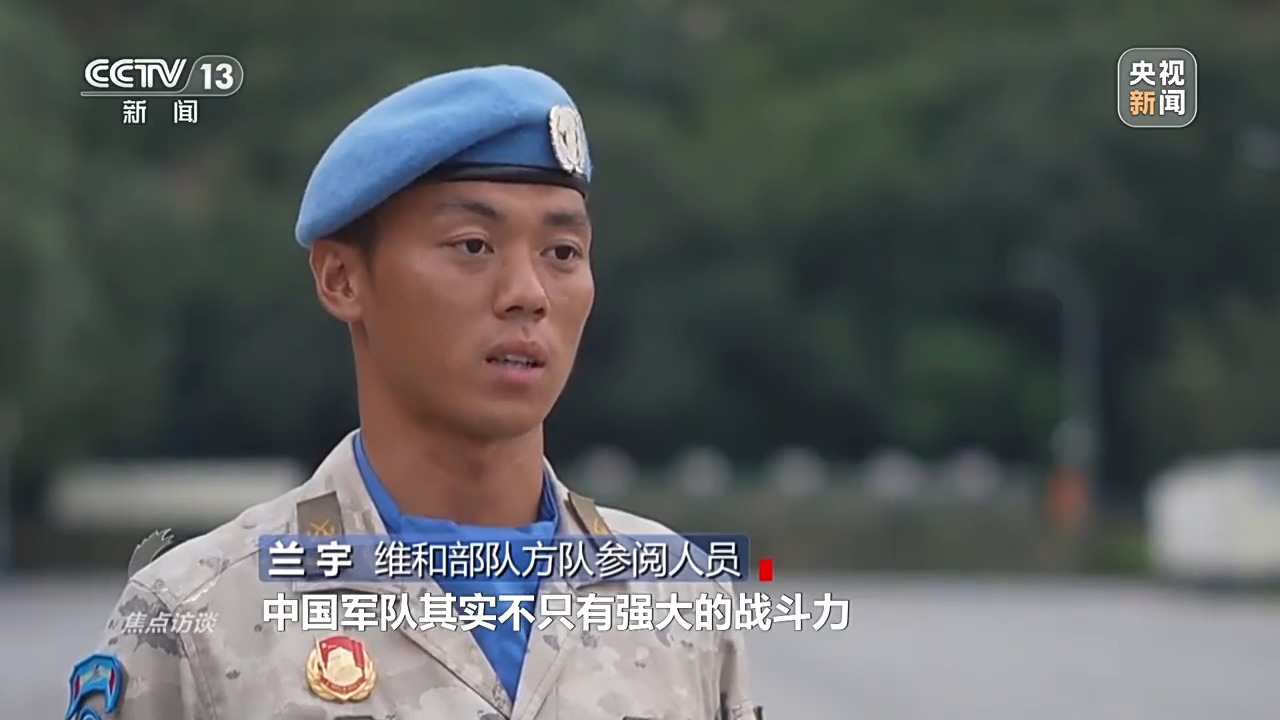维和部队方队参阅人员兰宇:走过天安门,更多想的是代表5万多名曾经参加过维和的战友们,维和部队一直强调脚下有力量。中国军队其实不只有强大的战斗力,更多的是维护世界和平的决心和能力。80年前,我们是为自己国家的和平而战;80年后的今天,我们在为世界和平而努力。