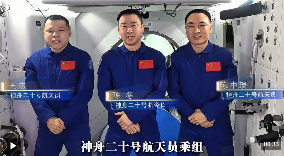 正在执行神舟二十号任务的航天员陈冬、陈中瑞、王杰,在中国空间站——也是电影《窗外是蓝星》的拍摄地,特别向观众发来问候。