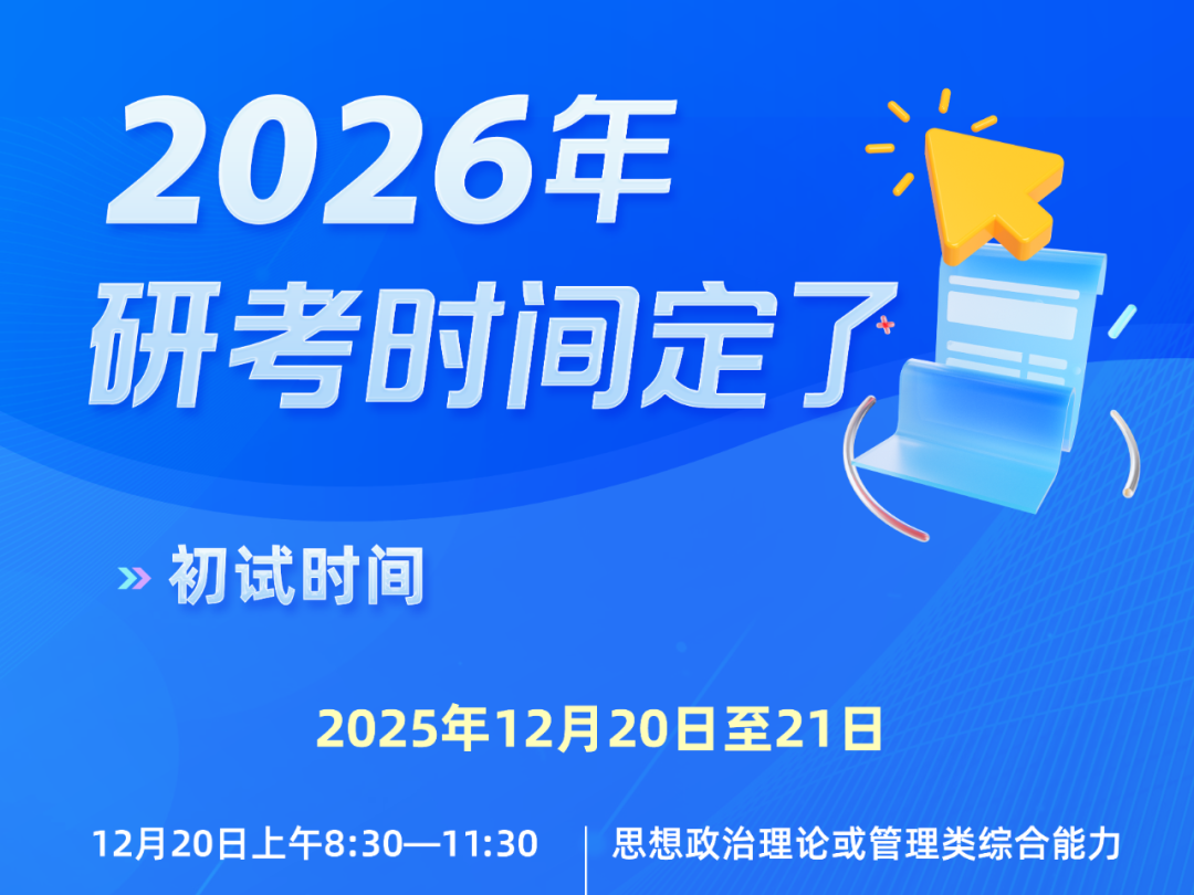 2026年全国硕士研究生招生初试时间为2025年12月20日至21日。