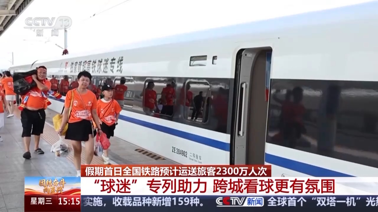满载球迷的专列呼啸而过,跨城观赛成为“双节”假期体育旅游的新风尚。这个假期,国铁济南局、南昌局分别开行“鲁超”“赣超”球迷专列,铁路部门积极协调地方交通部门,开通火车站至赛场定制专线接驳公交,通过专列接送跨城的旅客,再用公交衔接最后一公里的组合举措,为球迷假期出行助力。