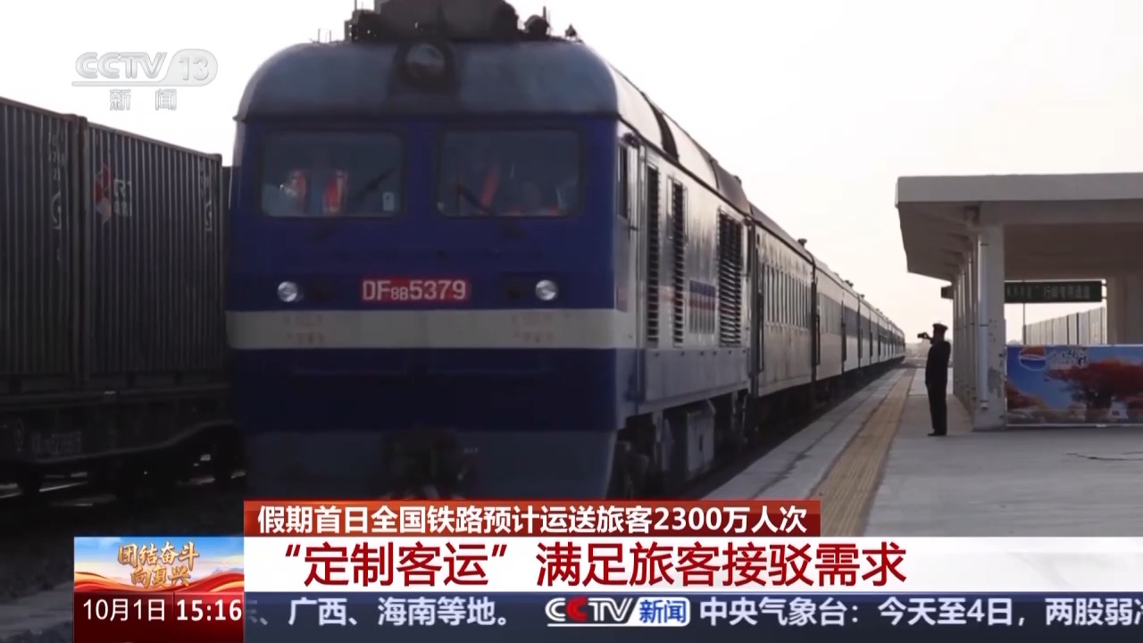 总台央视记者 陈晰:今年国庆、中秋相遇,旅游、探亲等多种出行需求叠加,全国铁路预计,今天将是假期里客流最旺的一天,运送旅客将达2300万人次,计划加开旅客列车2106列,为了让大家走得顺畅便捷。