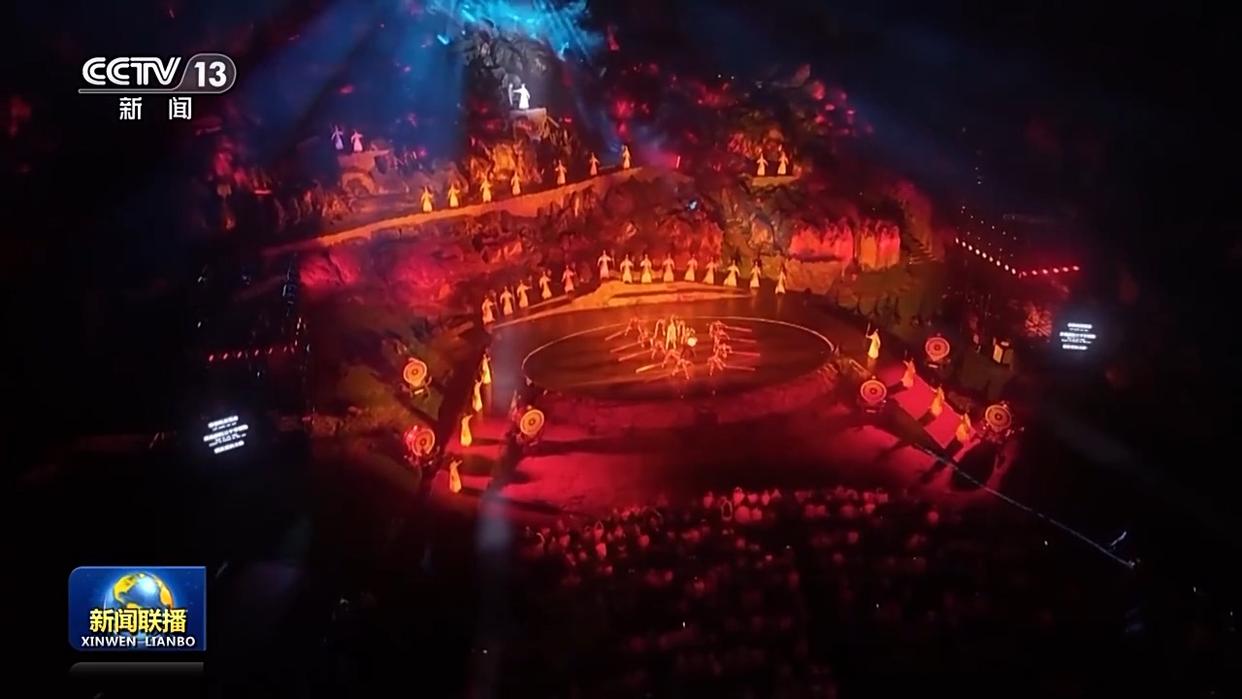 在四川宜宾,以喀斯特地貌为载体的沉浸式演出《石海长歌》,为游客带来“行进式观演”新体验。