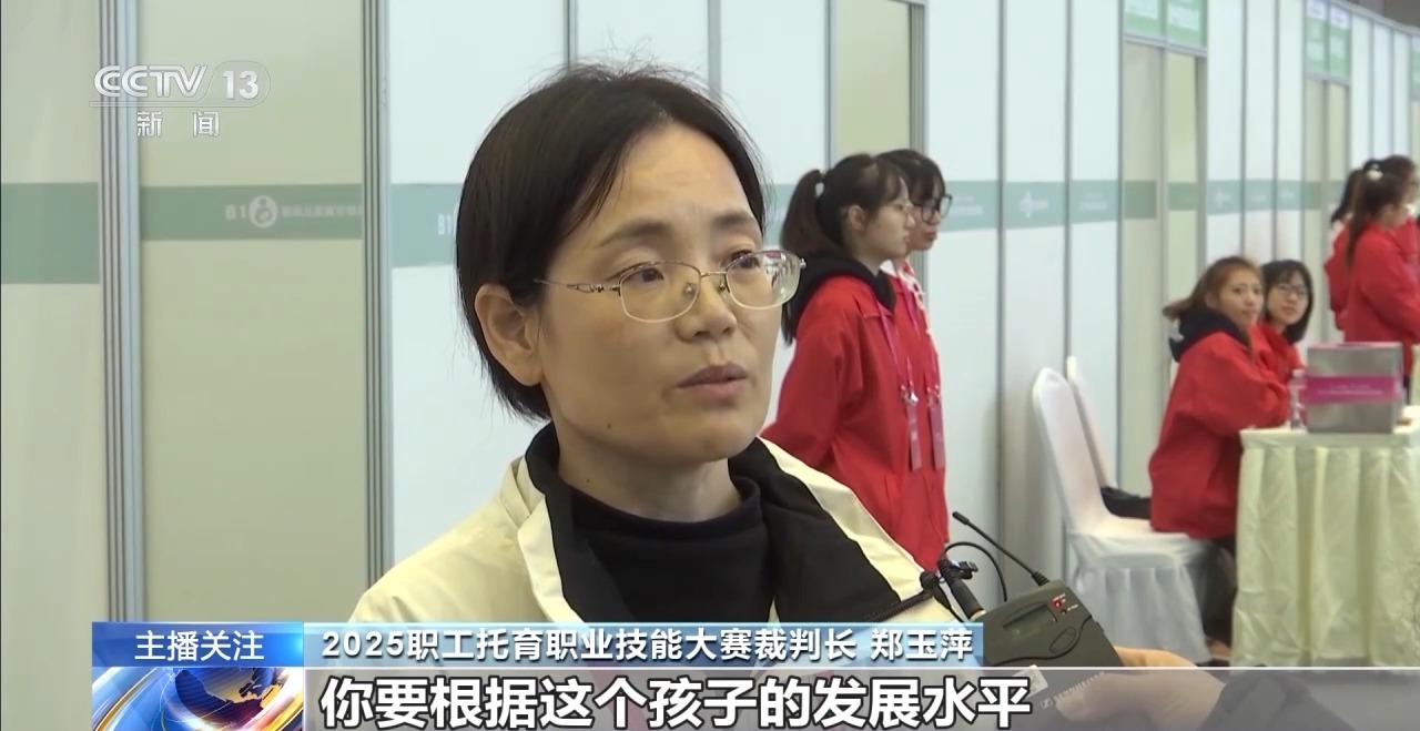 2025职工托育职业技能大赛裁判长 郑玉萍:要根据孩子的发展水平,使用合适的语言,使用非常趣味化的语言来便于他的理解。另外还特别注重家庭和幼儿园共同养育的过程。我们要指导家长在家庭当中对孩子进行类似的一些指导。