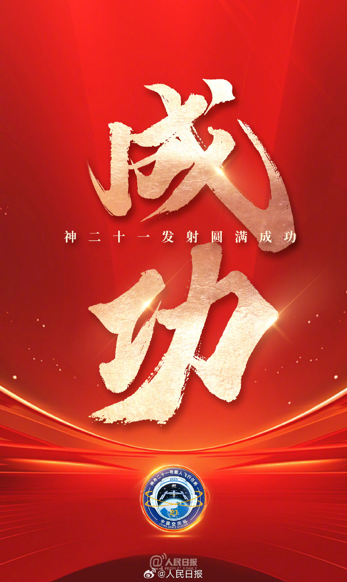 据中国载人航天工程办公室消息,北京时间2025年10月31日23时44分,搭载神舟二十一号载人飞船的长征二号F遥二十一运载火箭在酒泉卫星发射中心点火发射,约10分钟后,飞船与火箭成功分离,进入预定轨道,航天员乘组状态良好,发射取得圆满成功。