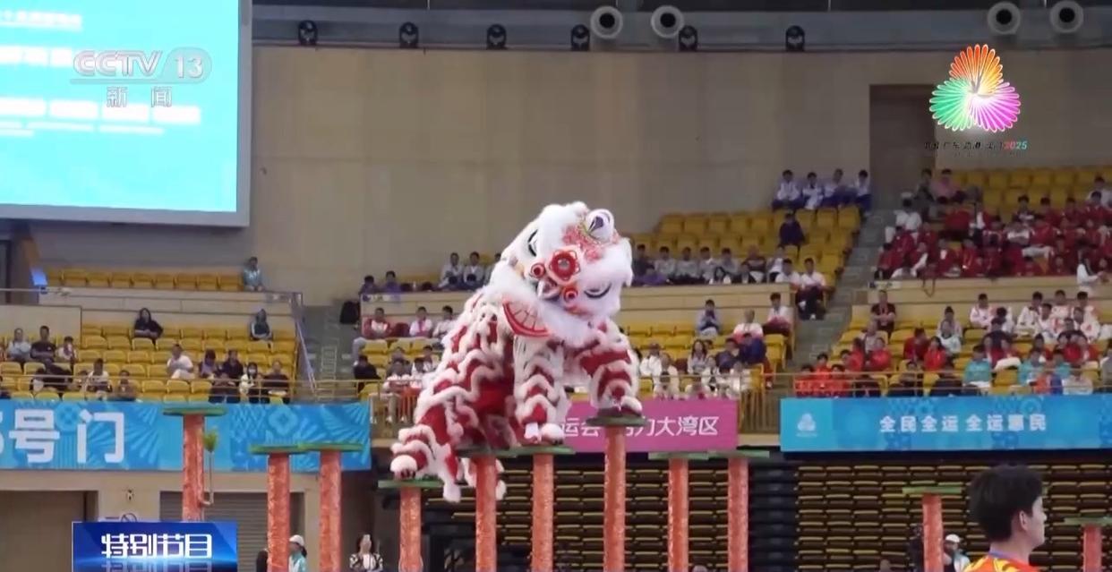 在佛山的全运会舞龙舞狮决赛上,粤港澳联队默契配合,拿下赛事首枚金牌。
