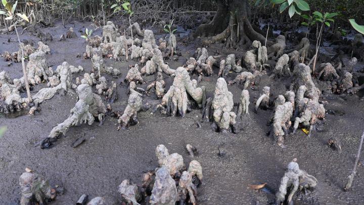 红树植物木榄的膝状呼吸根(央广网记者 陶淦 摄)