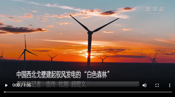 利用充沛的风力资源,新疆在戈壁荒漠上建起一片片“白色森林”,实现驭风化电,变害为宝。