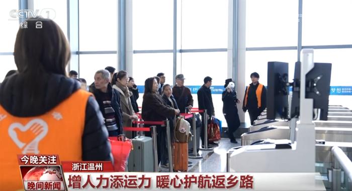 在浙江温州北站,旅客较平日明显增多,为此,车站新增了不少橙色马甲的志愿者,为旅客提供引导咨询、行李搬运、购票协助等暖心服务。