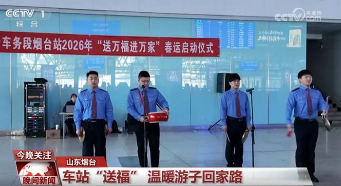 山东烟台:车站“送福” 温暖游子回家路