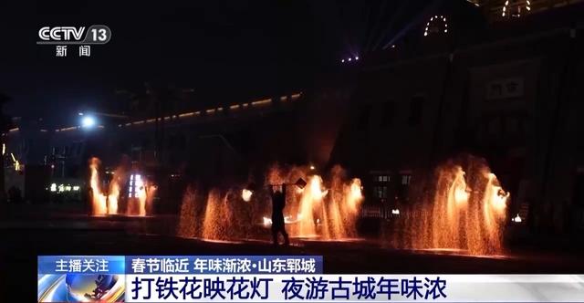夜幕下的郓城古城景区灯火璀璨、游人如织。花灯、打铁花,传统民俗与新年氛围交织,让古城夜游成为不少市民游客感受年味儿的新选择。