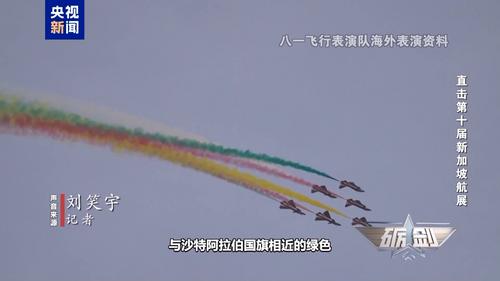 记者 刘笑宇:尤为特别的是,此次表演队在拉烟配色选择上,专门增加了与沙特阿拉伯国旗相近的绿色,这样做是向主办方沙特致敬,同时也象征了和平。