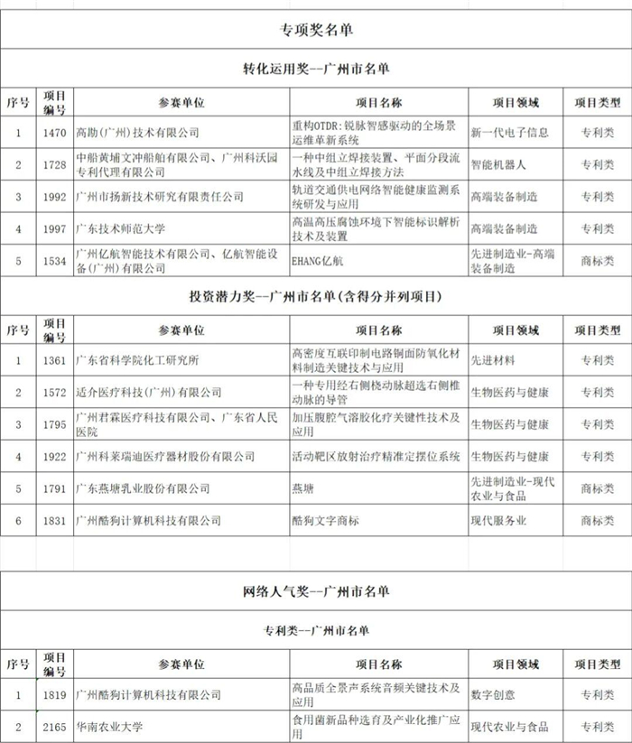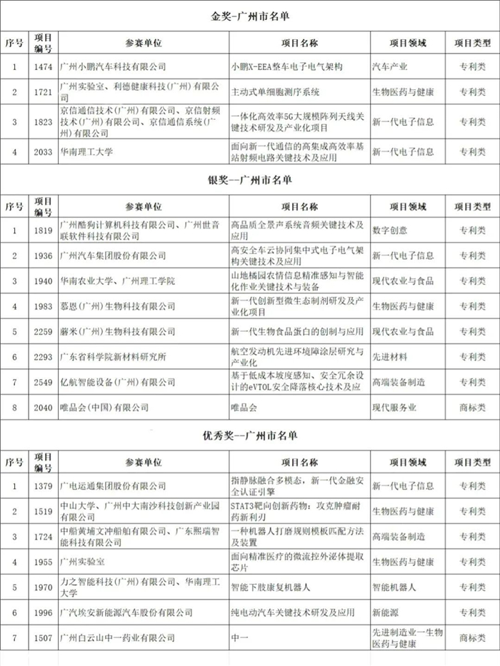 本届大赛共评选出金奖10项、银奖20项、优秀奖31项以及专项奖51项,覆盖新一代信息技术、高端装备制造、生物医药、新材料等重点产业领域。