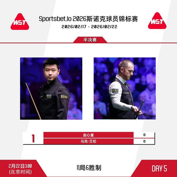 2026斯诺克球员锦标赛四强选手分别为:赵心童、约翰·希金斯、贾德·特鲁姆普、马克·艾伦。