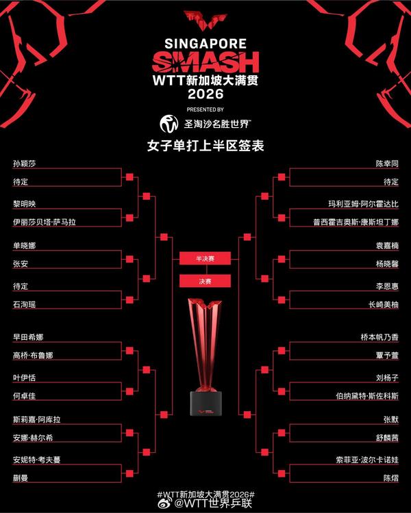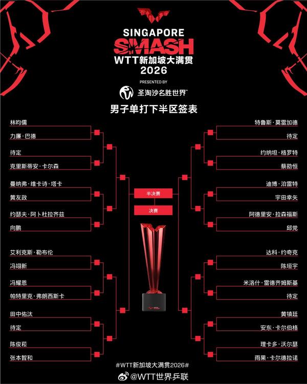 2026年WTT新加坡大满贯正赛将于