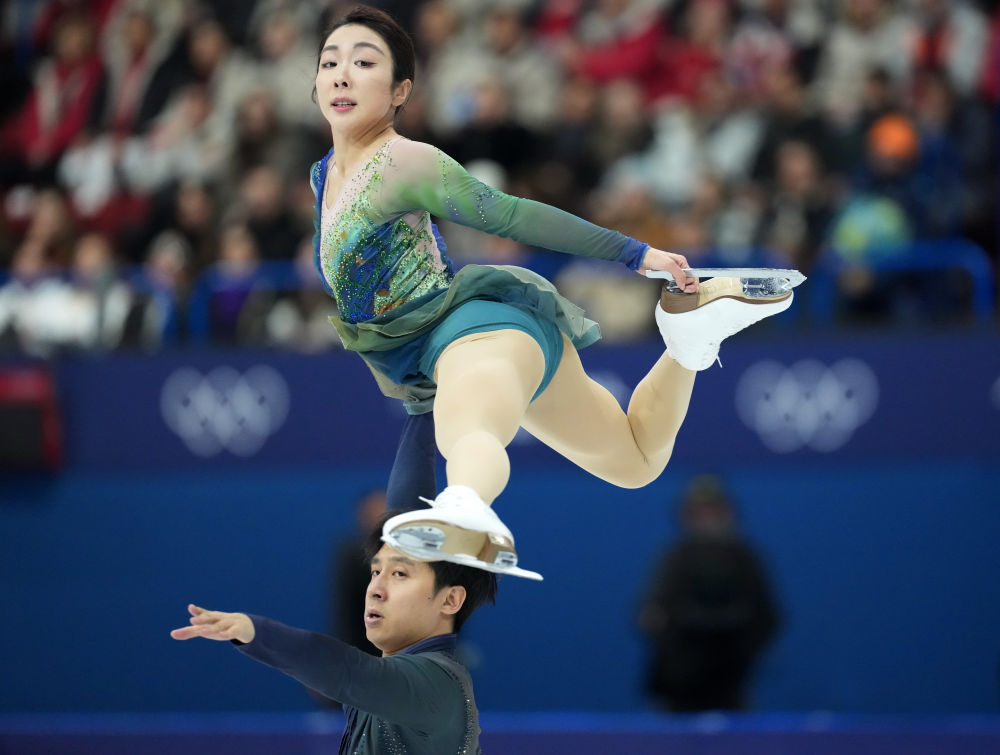 2月16日,中国选手隋文静(上)/韩聪在双人滑自由滑比赛中。新华社记者 薛宇舸 摄