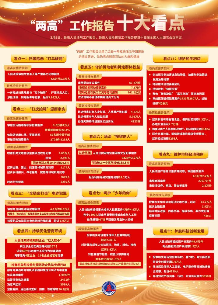 新华社北京3月9日电题:“两高”工作报告十大看点