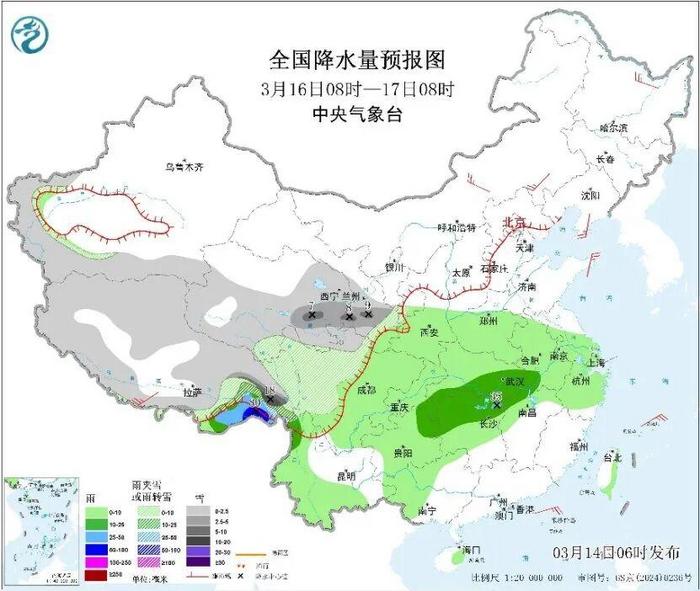 中央气象台预计,明天,内蒙古东北部、黑龙江西北部、新疆南疆盆地和西部山区、西藏东部和西南部、川西高原北部等地部分地区有小到中雪或雨夹雪,其中,西藏东部部分地区有大雪,局地暴雪。西藏东南部、云南西北部、河南南部、安徽西部、湖北大部、湖南北部、贵州中东部等地部分地区有中到大雨,其中,西藏东南部等地局部地区有暴雨。