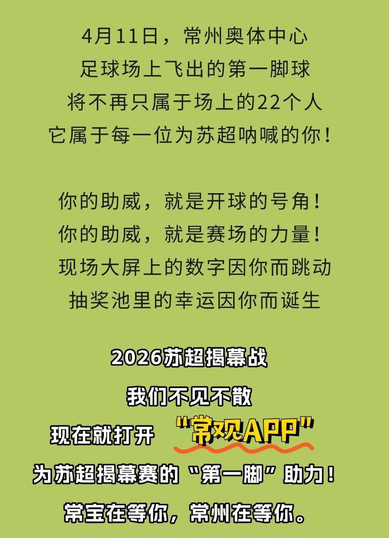 (原标题:四步一键!2026苏超揭幕战 常宝邀您来开球!)