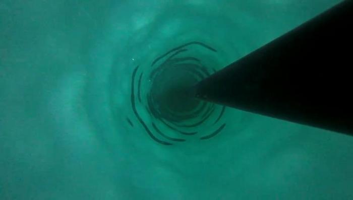 △我国首次南极冰层热水钻探试验冰盖下画面。