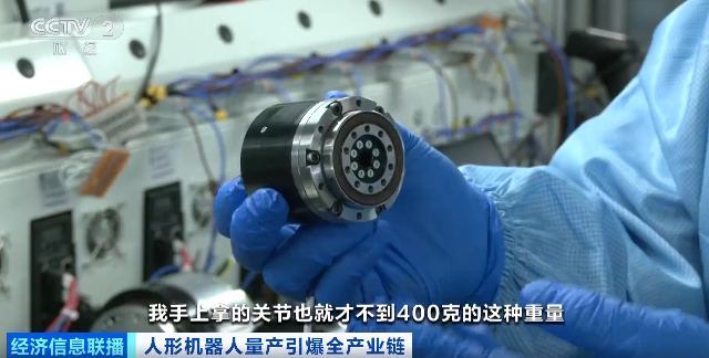 江苏绿的谐波股份有限公司副总经理 储建华:谐波关节体积重量可以做得很轻很小,我手上拿的关节重量不到400克,但支撑末端的负载可以达到4千克或者5千克。今年参加的马拉松比赛,有一部分是用行星减速技术做的关节,爆发力会强一点,所以人形具身机器人赛道对整个产业链的带动,对新技术的推动,它的速度都是按天加速的。