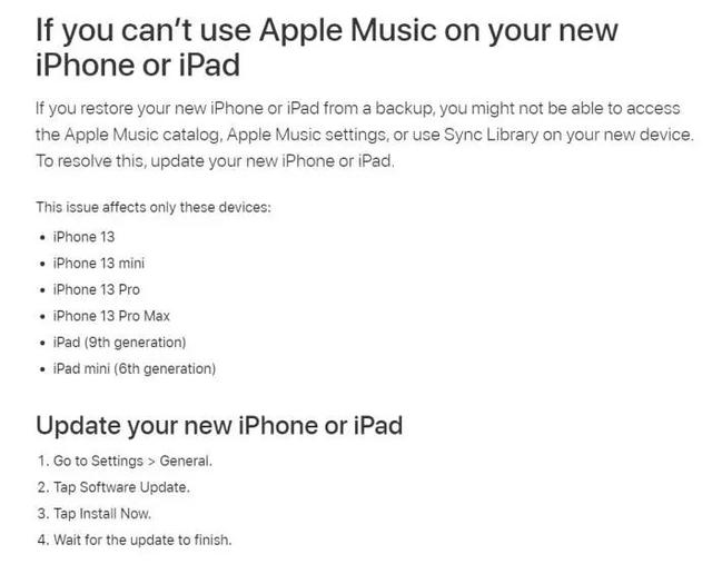 对此,苹果官方声明称,目前已确认的是备份恢复出现Bug。部分iPhone 13从备份中恢复到iPhone/iPad后,可能导致小组件重置到默认状态,Apple Music也可能受到影响,导致无法访问目录、设置,或使用同步库。可能出现该问题的设备,包括了iPhone 13系列、第九代iPad和第六代iPad mini。苹果在官网表示,可以通过软件更新解决存在的问题。