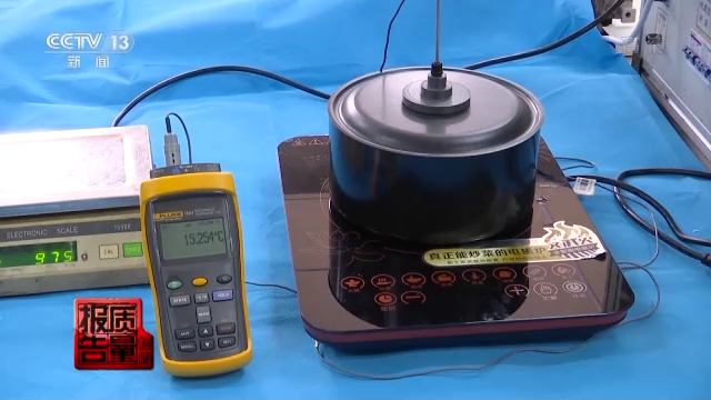 但记者在检测机构看到,当检测人员根据国家标准规定,在温度控制器失效的情况下,对这台标称为广东新品信电器有限公司生产的三角牌电磁灶进行非正常工作测试时,油的温升很快就超过270开尔文。