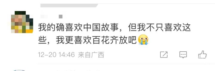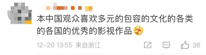 还有部分网友表示,好电影其实不分中外,“电影好看自然会有票房,无论中外”“我的确喜欢中国故事,但我不只喜欢这些,我更喜欢百花齐放”“本中国观众喜欢多元的、包容的、文化的、各类的、各国的优秀影视作品”。