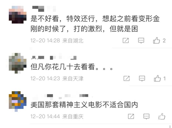 但也有不少网友表示支持“《阿凡达2》确实没意思,就是特效”“美国那套精神主义电影不适合国内”。
