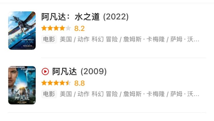 豆瓣上,《阿凡达2》目前的评分为8.2分,也比第一部《阿凡达》低了0.6分。