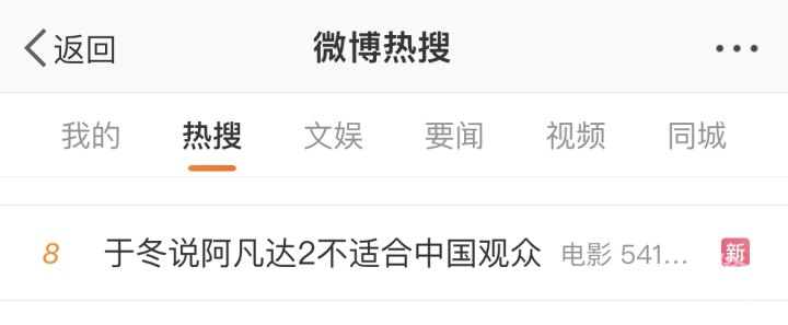 橙柿互动报道 #于冬说《阿凡达2》不适合中国观众#的话题词冲上了热搜!