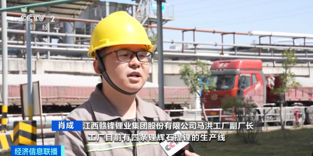 江西赣锋锂业集团股份有限公司马洪工厂副厂长 肖成:工厂目前有四条锂辉石提锂生产线,每天处理量达到2400吨左右。目前采用的是硫酸焙烧法(提锂工艺),工艺优化之后,矿石提锂这一部分的收率逐步达到90%以上。