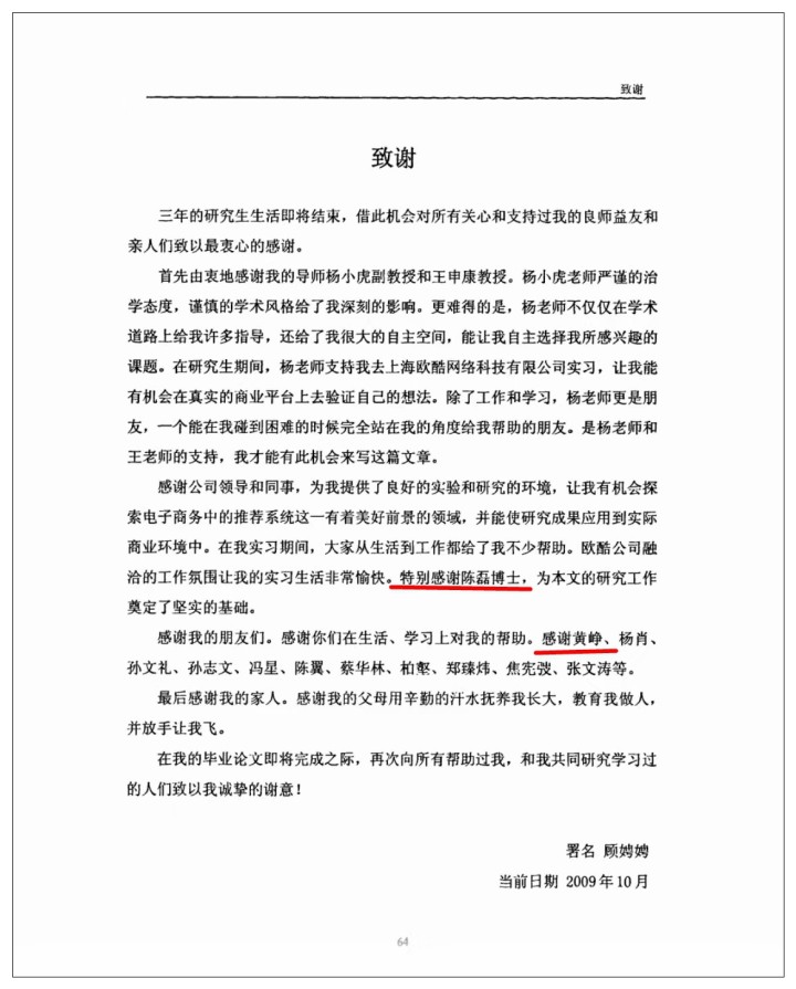 顾娉娉的毕业论文感谢了黄峥和陈磊