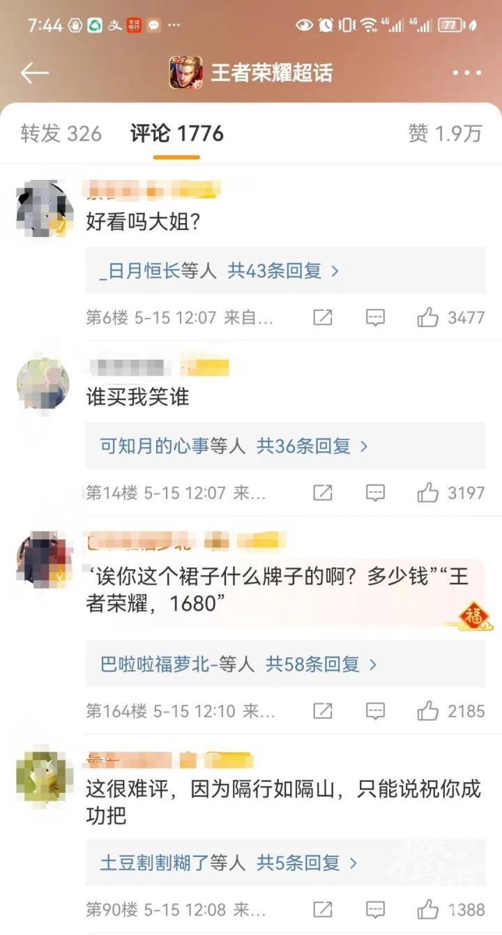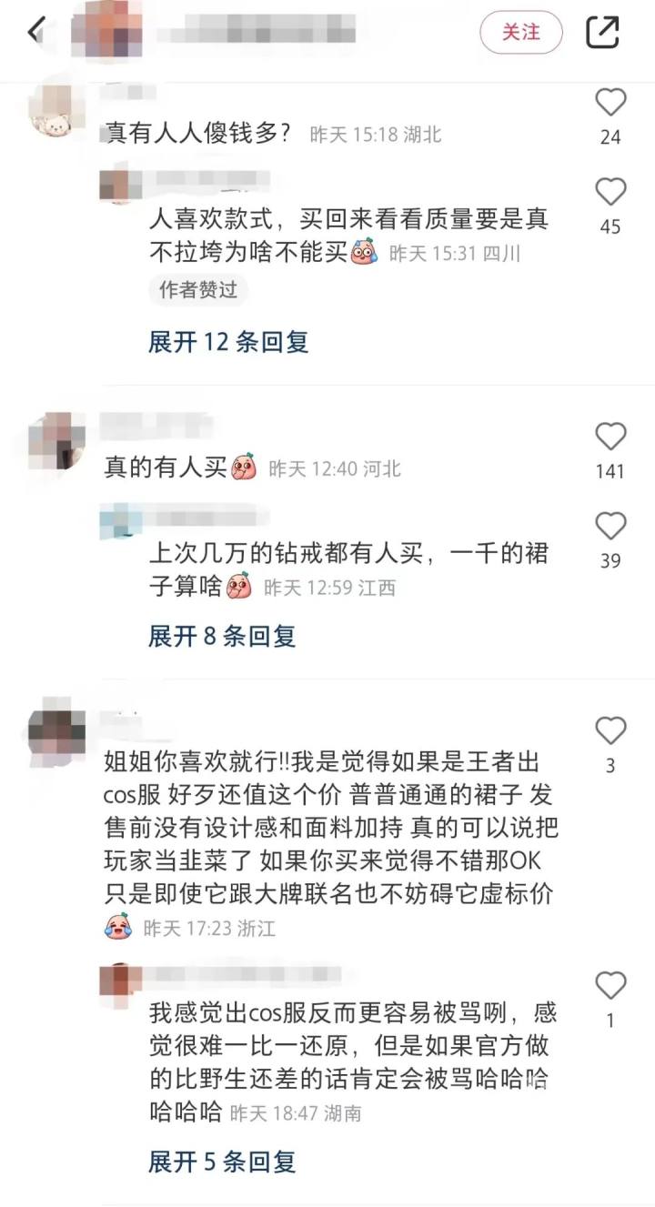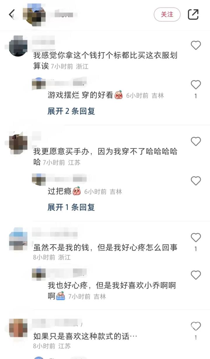 还有些貂蝉,小乔和瑶妹的玩家购买了衣服并在社交平台晒出来后,评论区里有不少网友也在吐槽:如果买个样子完全没必要。
