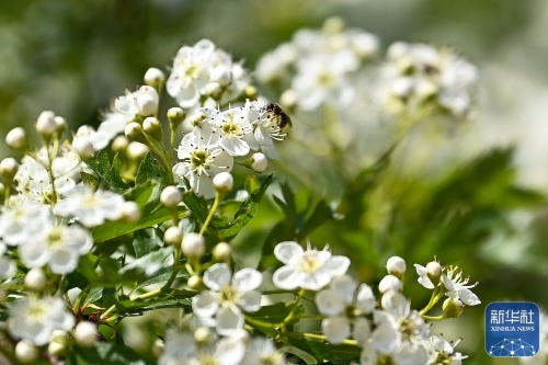 ↑这是在新疆伊犁哈萨克自治州霍城县中华福寿山景区拍摄的野山楂花(5月17日摄)。