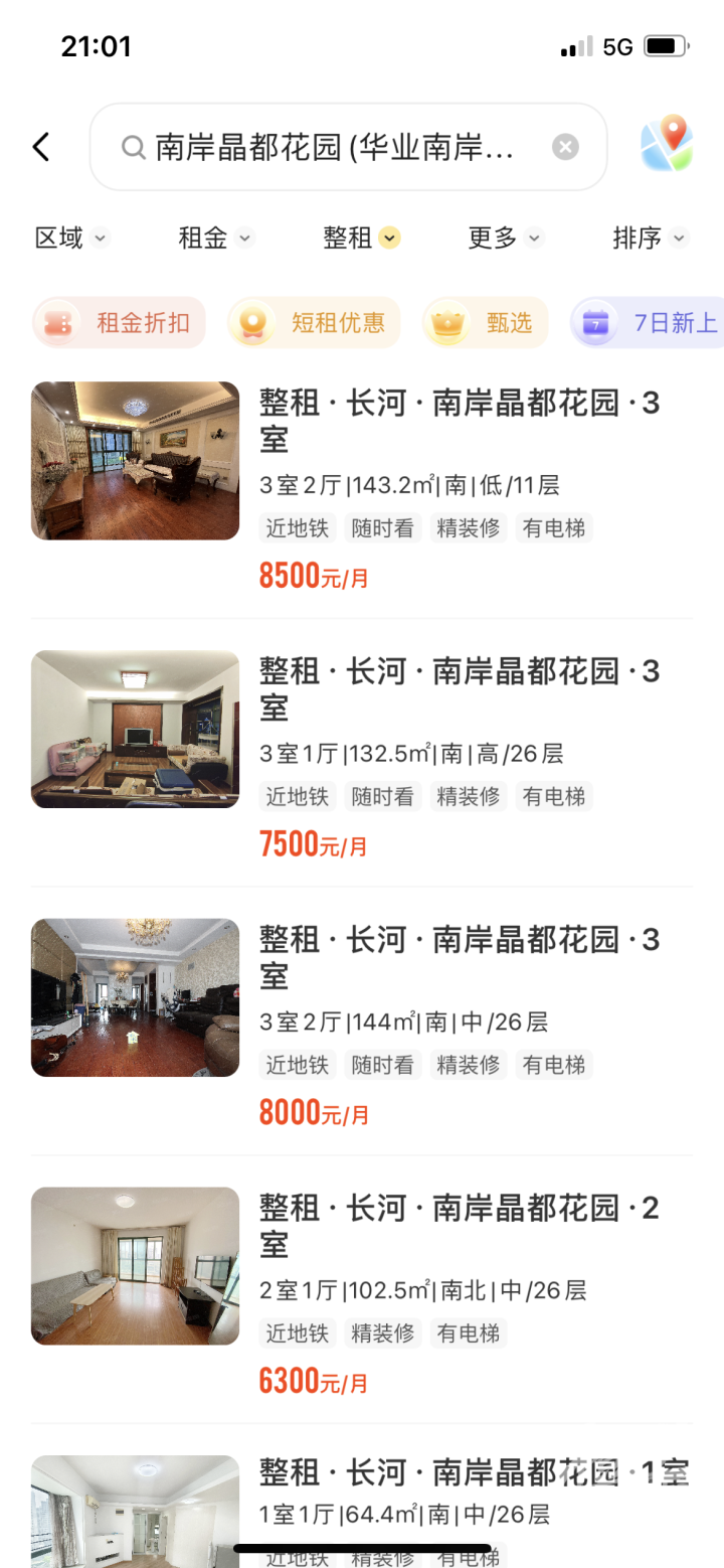 再来看附近的租房价格,因为大厂多年轻人多,所以租房市场一直很旺盛。比如绿城卓越·傲旋城斜对面的南岸晶都,虽然是20多年房龄的老房子,不过一套140方左右的三房两厅可以租到8000元-8500元/月。