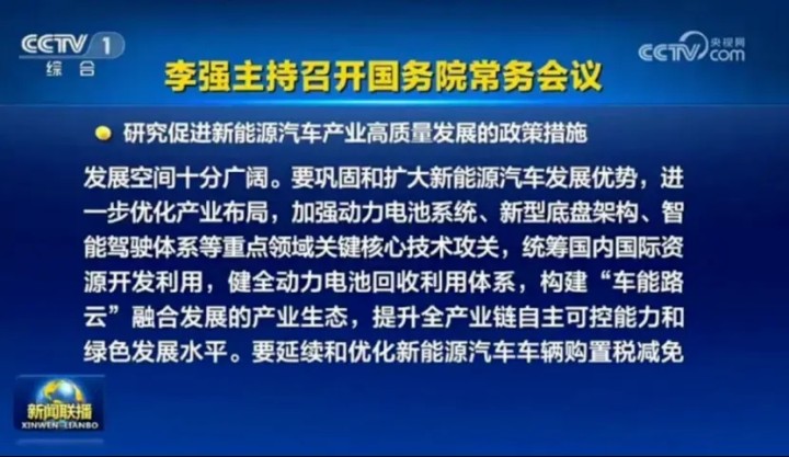 近日,据央视新闻报道,国务院常务会议召开,研究促进新能源汽车产业高质量发展的政策措施。会议明确指出,要延续和优化新能源汽车车辆购置税减免政策。