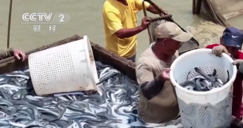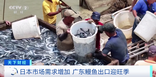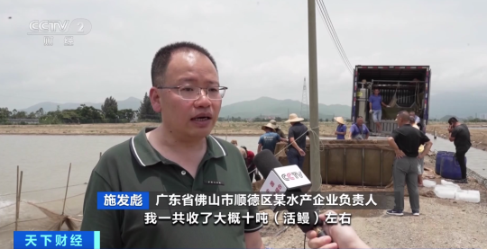 广东省佛山市顺德区某水产企业负责人 施发彪:我一共收了十吨左右活鳗,用水车运到上海,然后空运到日本去,需求量比较大。有两三个贸易商一起过来看鱼,都想要这个鱼,价格会升一点。