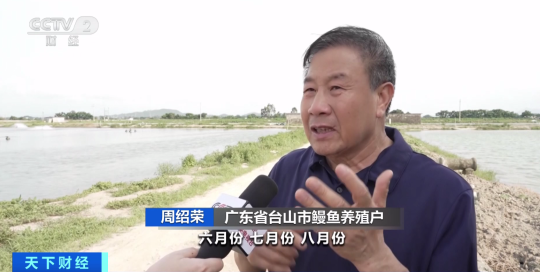 广东省台山市鳗鱼养殖户 周绍荣:六月、七月、八月,这三个月是旺季。一周大概要出十多吨鱼,价格也高于平时。