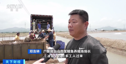 广东省台山市某鳗鱼养殖场场长 郑友林:凌晨四点多工人过来,今天要出活鳗六七吨,一吨净赚两万多元。